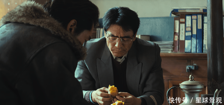 比如胡歌饰演的副县长多杰,和李光洁饰演的县长林培生一起围着火炉吃烤地瓜的时候。